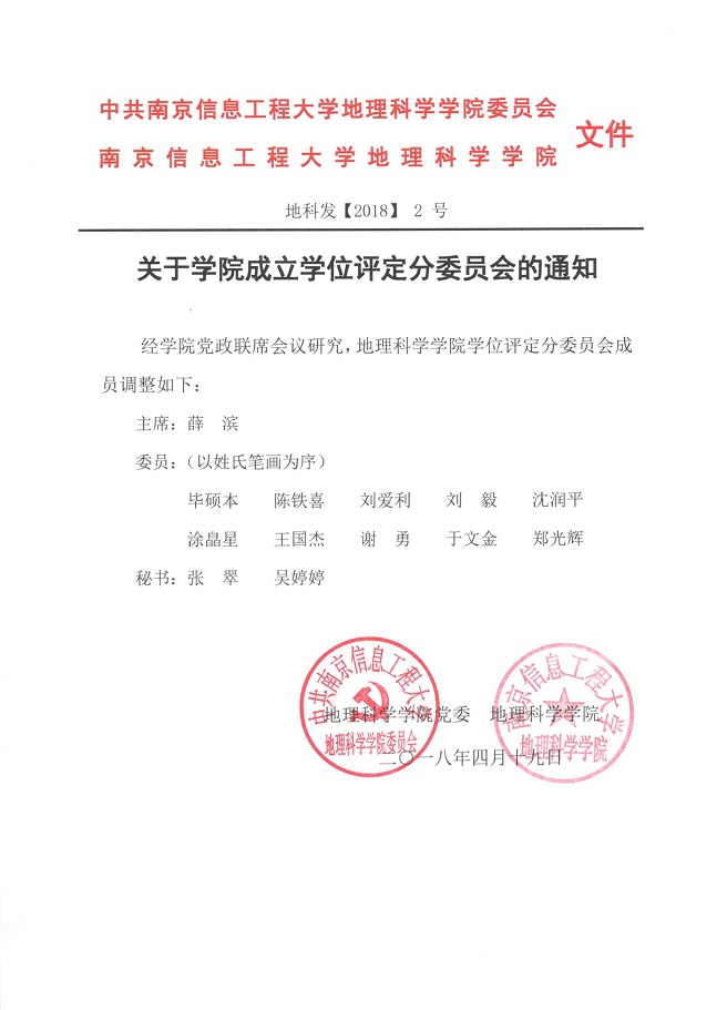 地科发【2018】 2 号 关于地理科学学院成立学位评定分委员会的通知