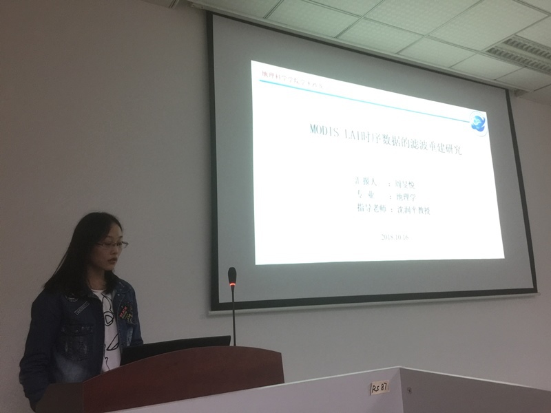 第三位报告人是我院2016级地理学专业周旻悦同学,导师为沈润平教授,主要研究方向是陆面过程遥感与模拟,已向《遥感技术与应用》投稿,论文题目是“基于像元质量分析和异常值检测的LAI时序数据S-G滤波重建研究”,现已录用。本次报告题为“MODIS LAI时序数据的滤波重建研究”。