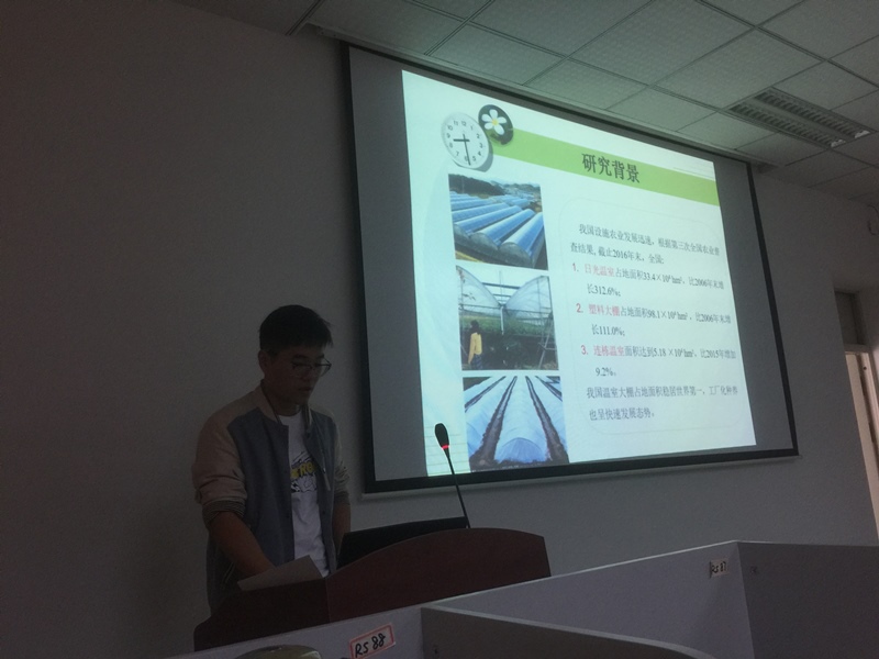 最后一位报告人是我院2016级地理学专业陈俊同学,导师为沈润平教授,主要研究方向是农业土地资源遥感及农田温室气体排放,现已向《国土资源遥感》投稿,论文题目是“基于Logistic回归分析的塑料大棚指数构建研究”,目前处于外审阶段。本次沙龙即基于已投稿的论文。