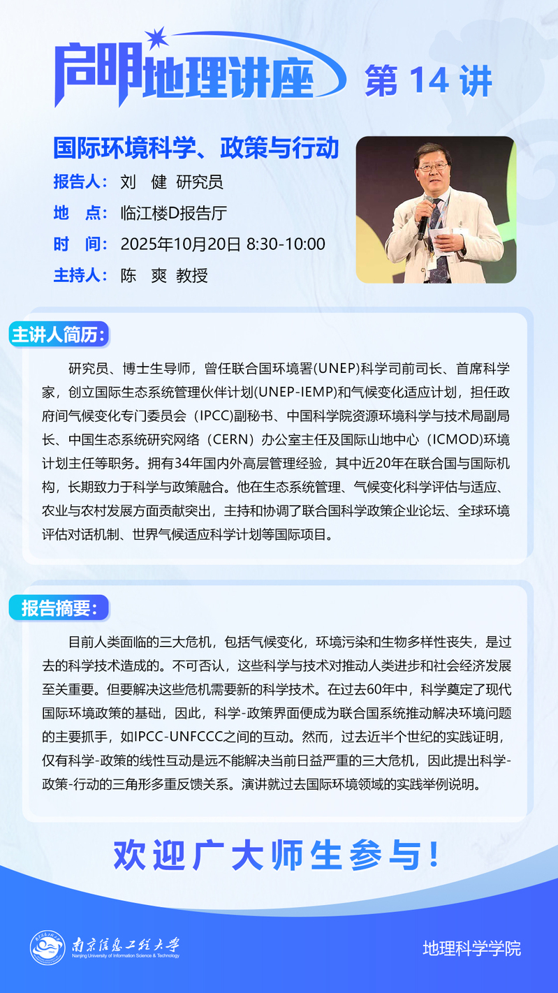 启明地理讲座(第14讲):特邀刘健研究员作学术报告